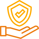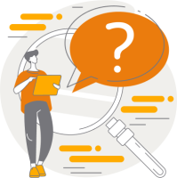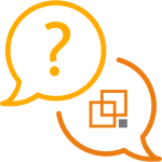 Zwei ineinandergreifende orange Vierecke, dynamisch nach oben gerichtet und auf einen dunkelgrauen Würfel gestützt